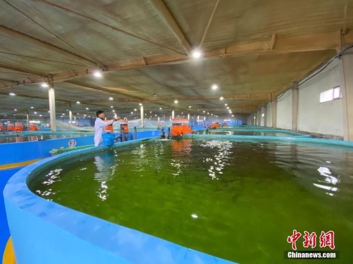 資料圖為(wei) 2020年12月28日拍攝的青海湖裸鯉救護中心循環水恒溫育苗車間。 中新社記者 李江寧 攝