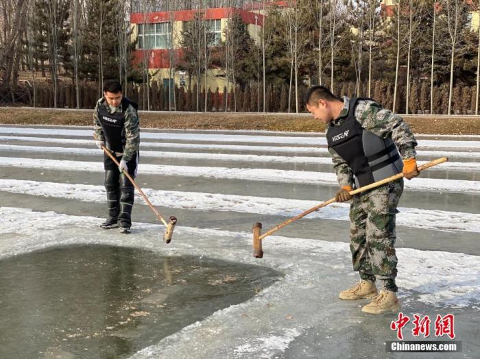 資料圖為(wei) 2020年12月28日,青海湖裸鯉救護中心工作人員在室外漁場破冰觀察裸鯉活動情況。 中新社記者 李江寧 攝