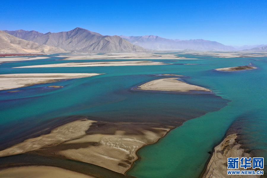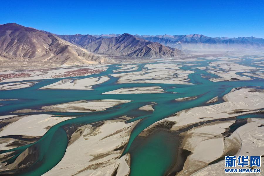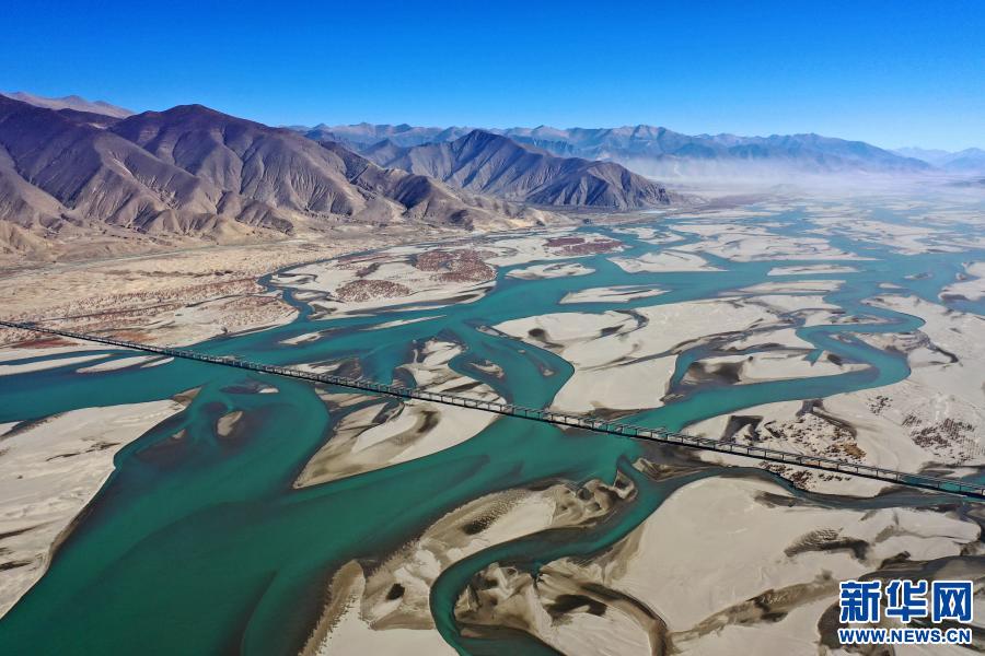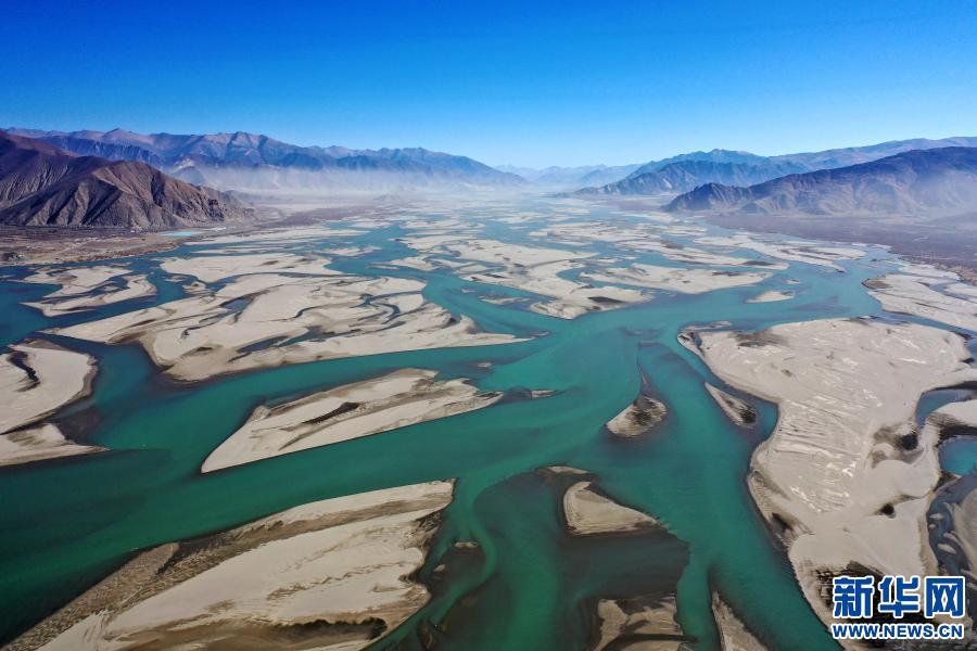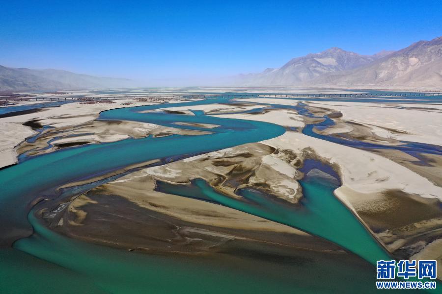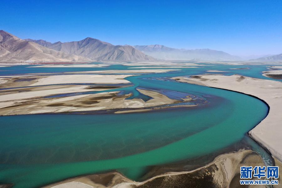 冬日,雅魯藏布江緩緩流淌,蜿蜒的河流與(yu) 藍天、群山相互映襯,呈現出一幅美麗(li) 的自然畫卷。