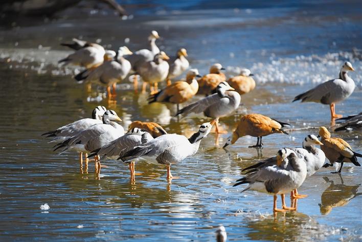 冬日,西藏拉薩市宗角祿康公園成為(wei) 了鳥兒(er) 的“樂(le) 園”,公園內(nei) 聚集了大批越冬候鳥,同時,數不盡的斑頭雁、赤麻鴨、紅嘴鷗在這裏嬉戲、覓食,成為(wei) 公園裏的一道風景線。