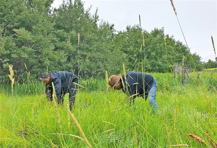 圖為(wei) 工作人員收割沙棘林旁的雜草。袁海霞 鄭璐 攝