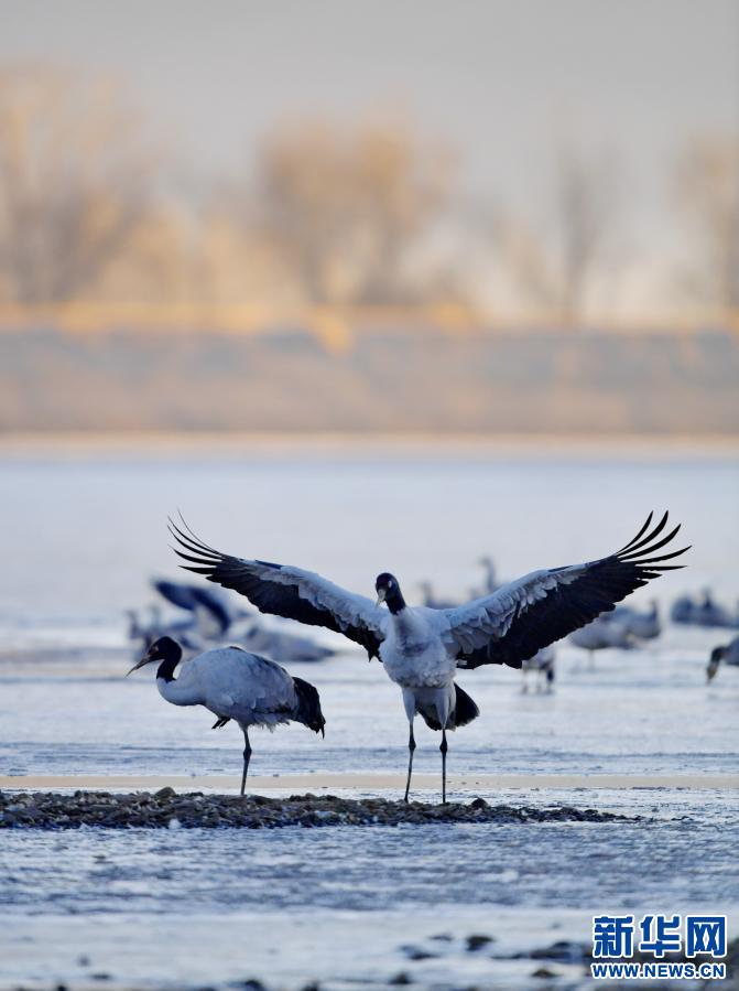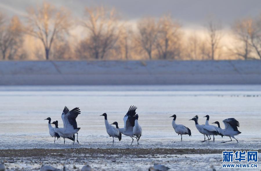 冬日,大批黑頸鶴在西藏拉薩市林周縣境內(nei) 棲息、覓食。 林周縣黑頸鶴自然保護區建立於(yu) 1993年,2003年被設立為(wei) 國家級自然保護區,是雅魯藏布江中遊自然保護區的核心部分,在每年的11月底至12月初,這裏便會(hui) 迎來成群的黑頸鶴過冬。