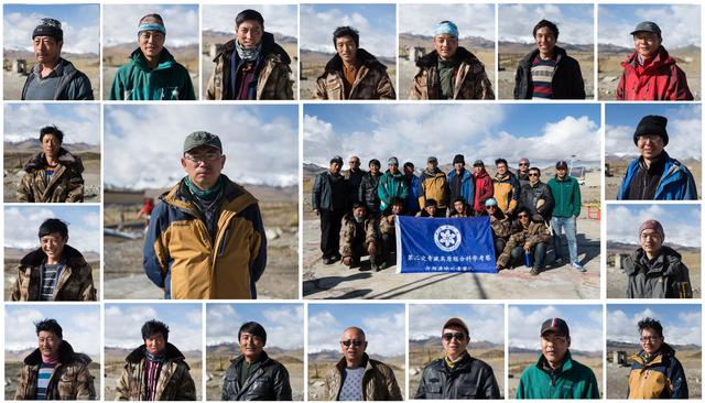 第二次青藏高原綜合科考“河湖源”冰川與(yu) 環境變化考察隊在西藏阿裏地區日土縣東(dong) 汝鄉(xiang) 阿汝村留影(拚版照片,2017年9月13日攝)。新華社發(劉東(dong) 君 攝)