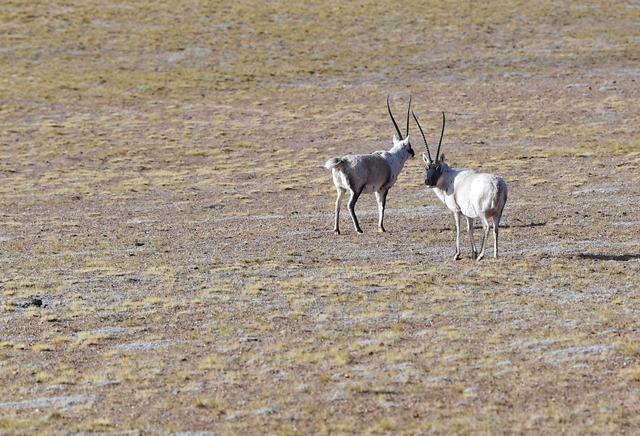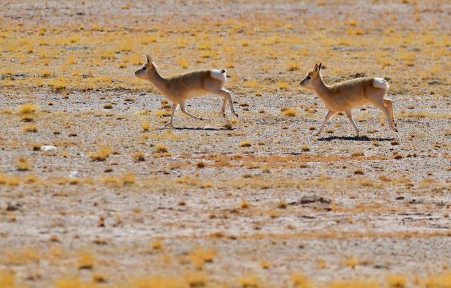 藏北高原上的兩(liang) 隻藏羚羊(1月16日攝)。新華社記者 張汝鋒 攝