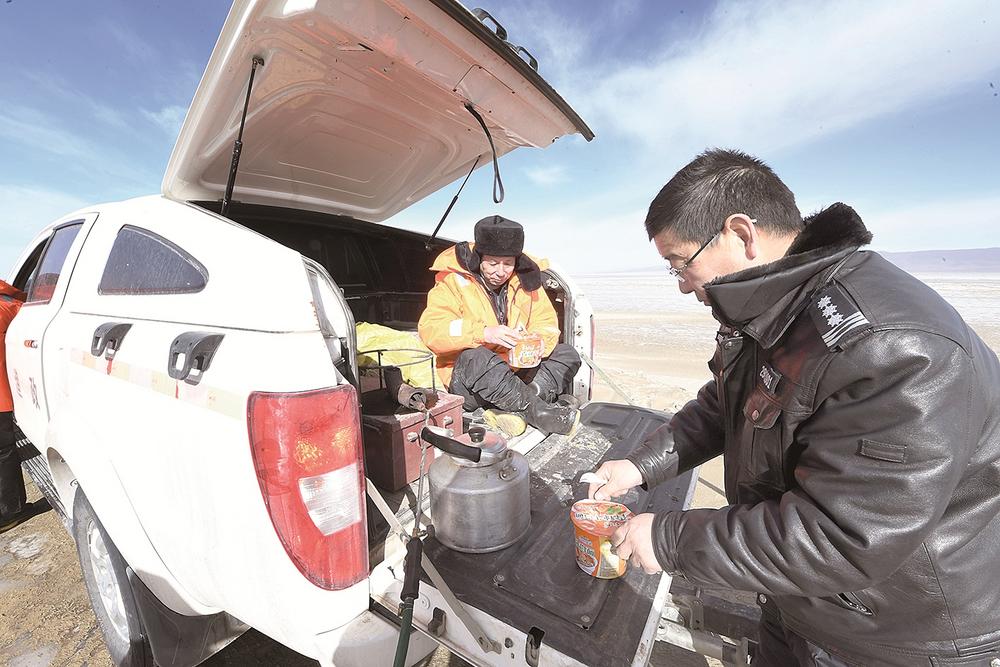 同事們(men) 前去巡查後不久,她們(men) 也開始忙碌起來,為(wei) 隊員們(men) 準備“豐(feng) 盛的午餐”——泡麵。平常再簡單不過的燒開水,在寒風凜冽的青海湖邊卻異常艱難。