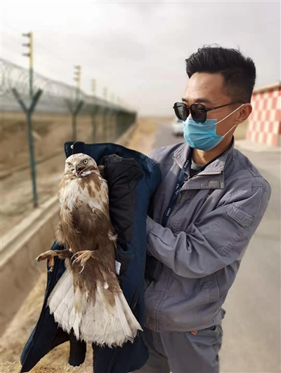 圖為(wei) 工作人員救助的國家二級保護動物大鵟。