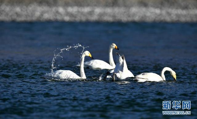 隨著氣溫回暖,位於(yu) 青海省海南藏族自治州貴德縣境內(nei) 的黃河成為(wei) 大天鵝的越冬“港灣”,它們(men) 在此覓食、休憩,為(wei) 冬日的黃河帶來勃勃生機。