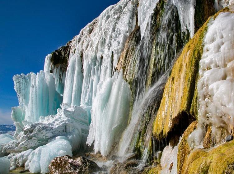 2021年1月23日,祁連山國家公園崗什卡雪峰山腳下的七彩冰瀑,由於溪水中含有多種礦物質,在冬日暖陽的照耀下,散發出五彩繽紛的綺麗風光,蔚為壯觀。[詳細]