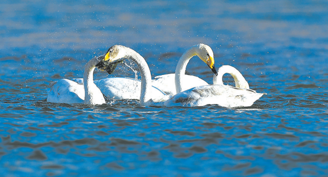 今冬,在海東(dong) 市化隆回族自治縣群科鎮安達其哈村的黃河水麵上,數百隻大天鵝悠然覓食、棲息,美麗(li) 的大天鵝和清澈的黃河水勾勒出一幅美麗(li) 的冬日畫卷。