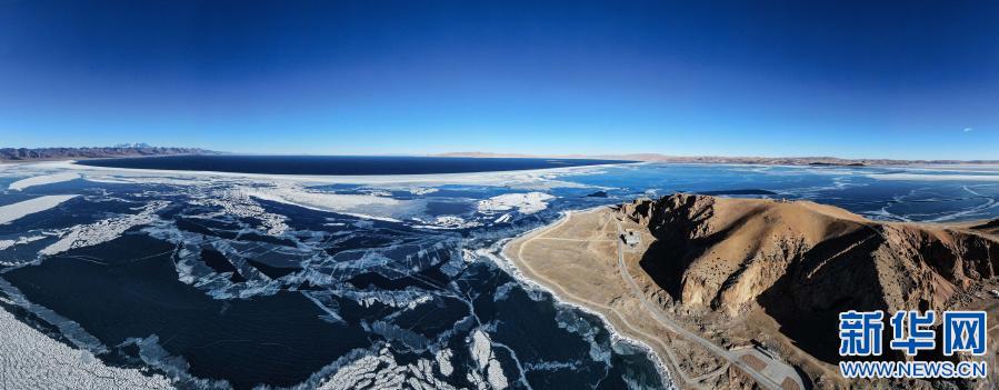 湖麵結冰的納木錯(1月29日攝,無人機照片)。新華社記者 晉美多吉 攝