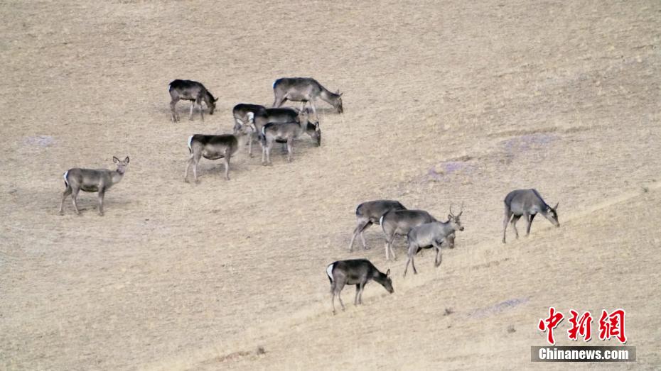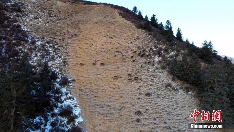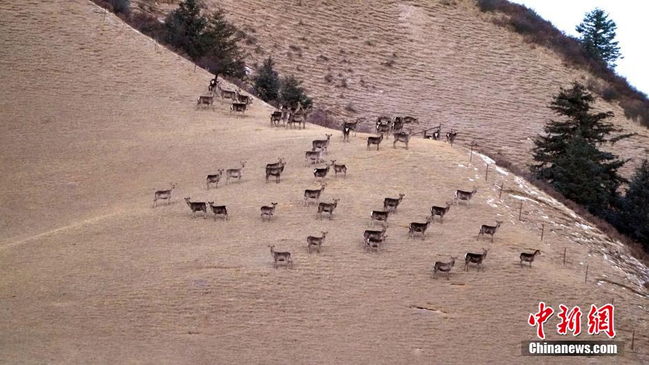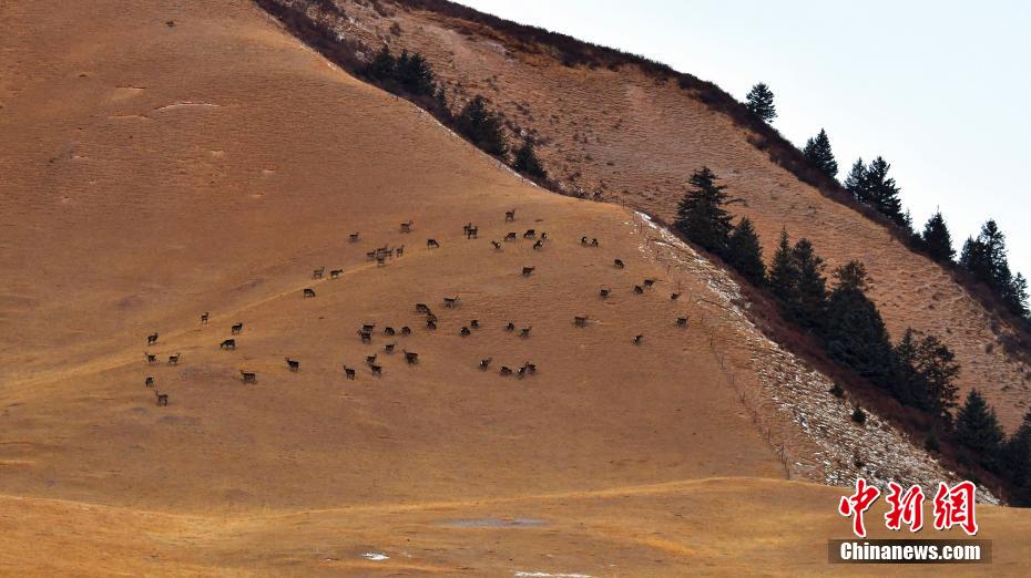 2月5日,在祁連山國家公園甘肅南段發現近百隻野生馬鹿種群。 吳生文 攝