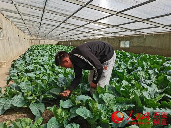 紮西旺傑在蔬菜大棚查看花菜長勢。 李海霞 攝