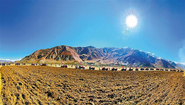 拉薩市達孜區塔傑鄉(xiang) 巴嘎雪村舉(ju) 行開耕儀(yi) 式。記者 旦增 攝