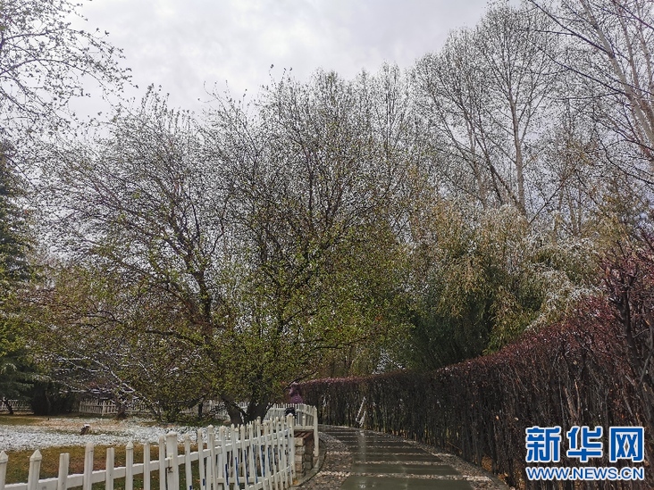 3月22日,雪後的龍王潭公園一景。新華網 張宸 攝