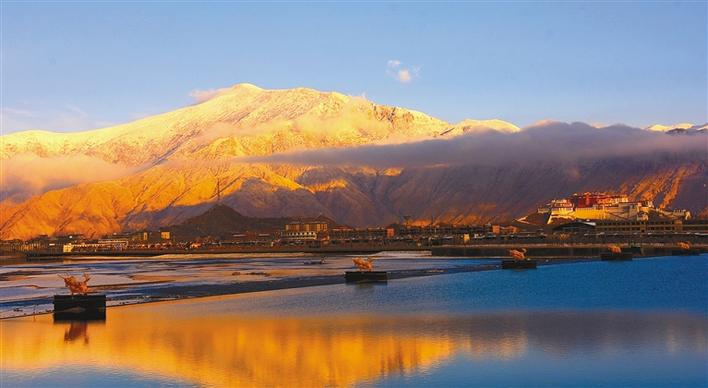 略帶寒意的陽春三月,柳條抽嫩芽,桃花各處紅。背陰處,未消的白雪壓在青鬆上;向陽處,晶瑩的雪水留在枝頭上,迷人的春雪美景詮釋著雪域高原最為(wei) 獨特的春。