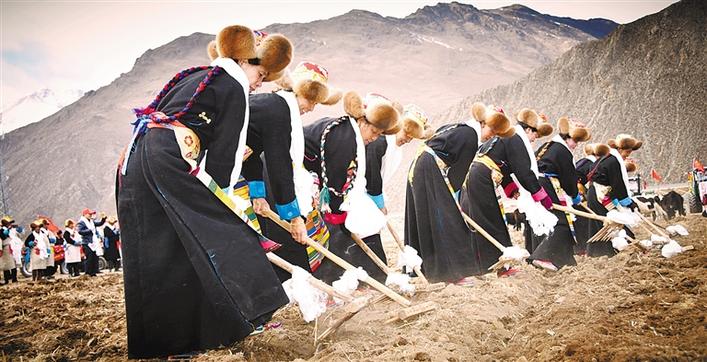 堆龍德慶區馬鎮馬村一年一度的春耕春播儀(yi) 式現場。