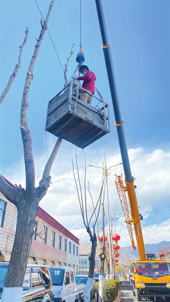 拉薩市園林相關(guan) 單位對市區開展春季樹木修剪工作。