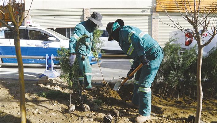 拉薩城關(guan) 區潔達園林公司工作人員開展春季市區補植補栽工作。