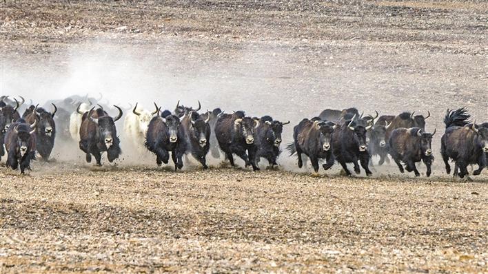 圖為(wei) 羌塘草原上奔騰的野犛牛。通訊員 曹枝清 攝