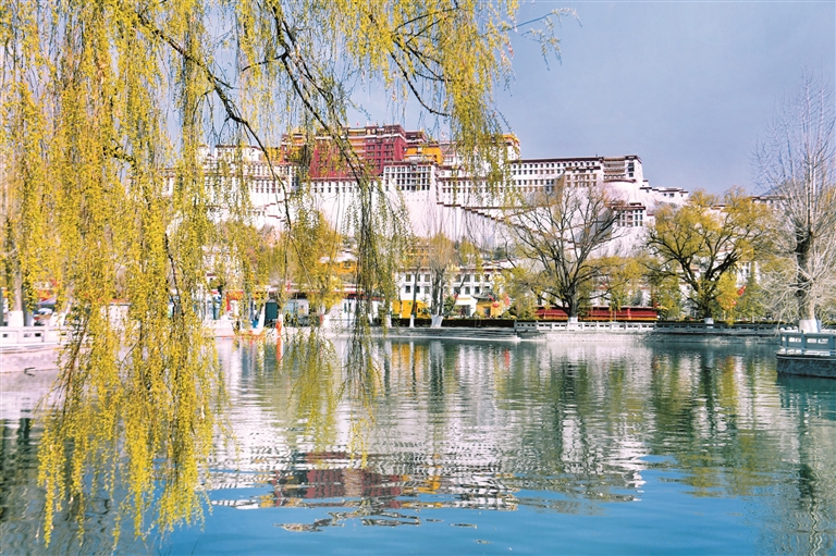 布達拉宮廣場上婀娜的柳枝已悄悄發芽。