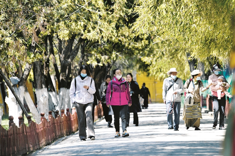 眾(zhong) 多遊客、市民打卡春天的羅布林卡。
