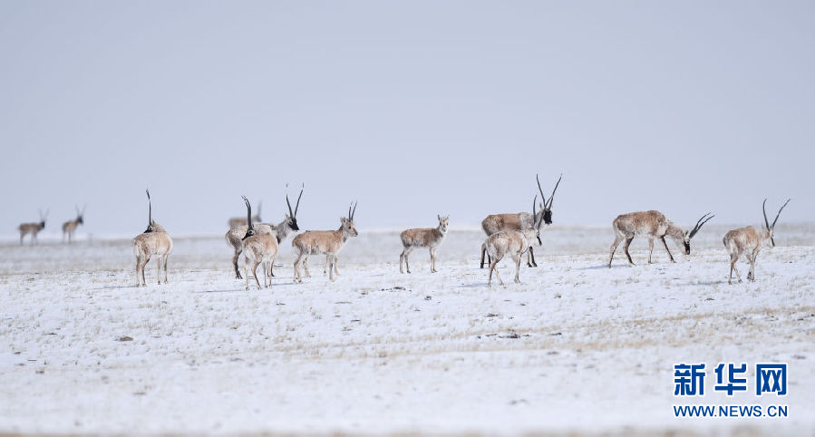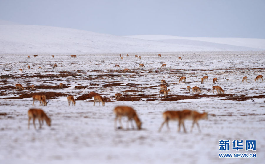近日,可可西裏迎來降雪,大量藏羚羊匯聚在可可西裏五道梁地區,踏上遷徙之路。