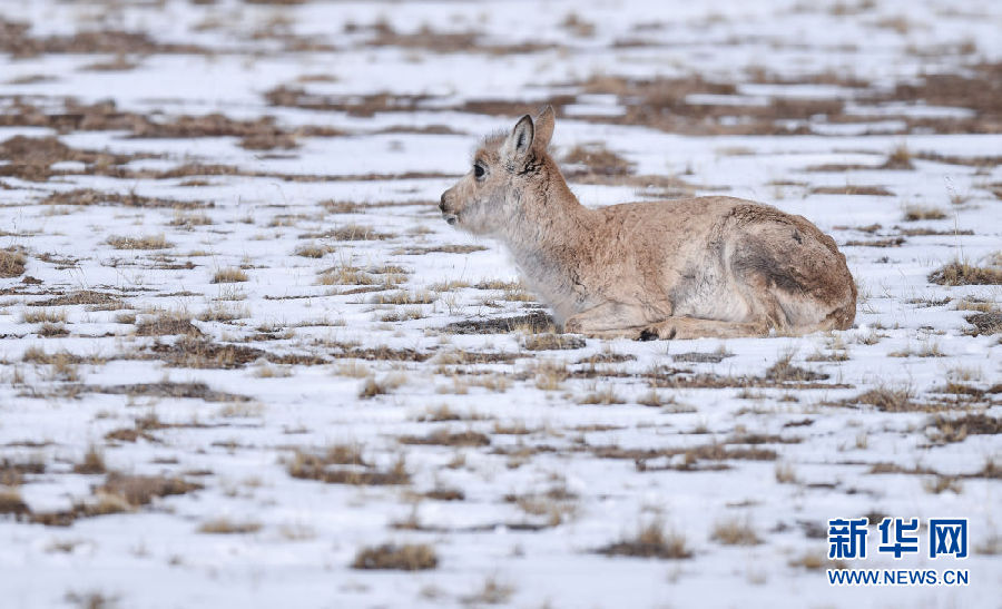 4月20日,一隻藏羚羊遷徙途中休息。新華社記者 吳剛 攝