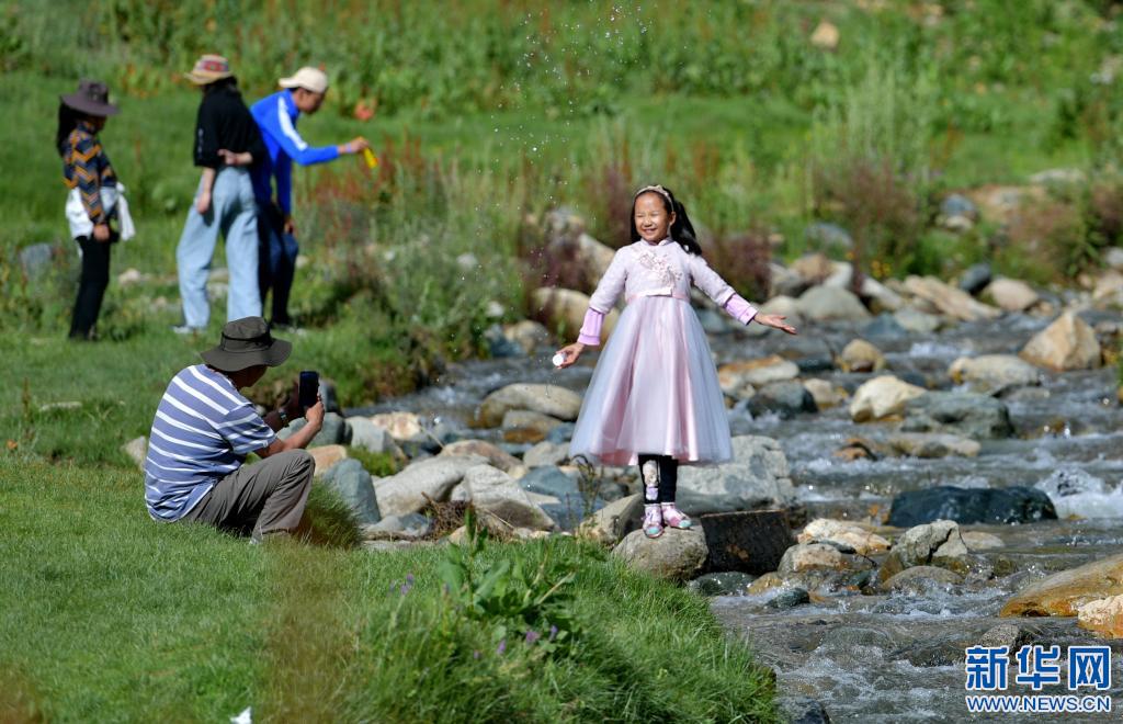 遊人在達東(dong) 村景區小溪邊玩耍(2019年7月20日攝)。新華社記者 張汝峰 攝