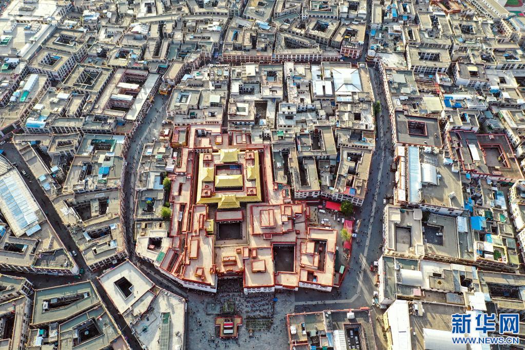 鳥瞰拉薩八廓街(2019年8月10日攝)。新華社記者 普布紮西攝