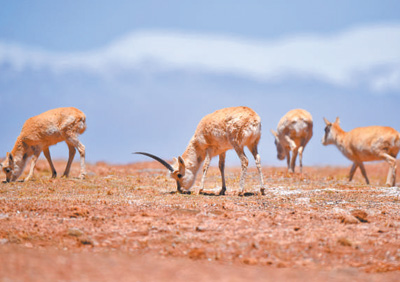 一群藏羚羊在可可西裏地區活動。新華社記者 吳 剛攝