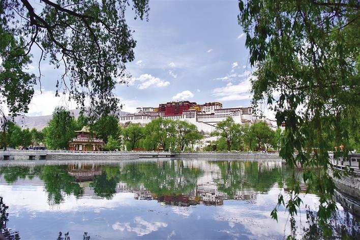 記者來到布達拉宮廣場,看到有很多遊客在湖邊拍照,湖麵清澈得像一麵鏡子,倒映著布達拉宮。這麽(me) 美的畫麵,小編也忍不住用相機記錄下來與(yu) 大家分享。