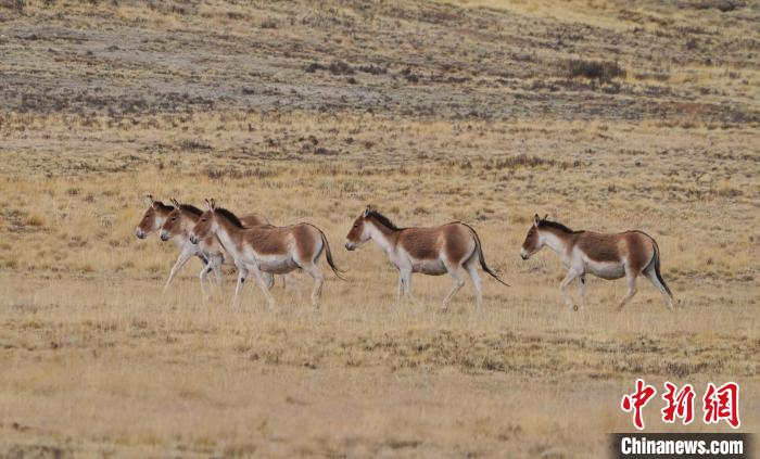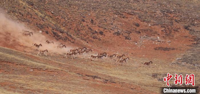 甘肅張掖肅南縣祁豐(feng) 藏族鄉(xiang) 近日發現並拍攝到大種群西藏野驢在祁連山奔跑,數量達80多頭。西藏野驢是國家一級保護動物,是青藏高原大型草食動物,生活於(yu) 高寒荒漠地帶。近年來,肅南縣通過實施草原禁牧減畜政策、封山育林、加大非法狩獵懲治力度等方式持續保護和改善生態環境,雪豹、藏野驢、黑頸鶴等國家一級野生動物頻繁出現,種群數量不斷擴大。