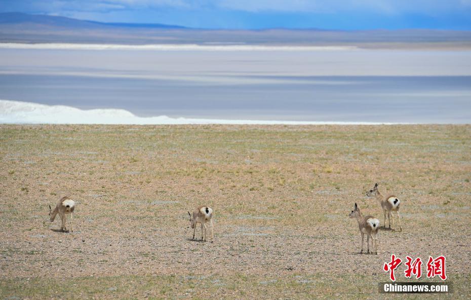 6月17日,西藏那曲羌塘草原上的藏羚羊。羌塘草原位於(yu) 西藏自治區北部,平均海拔超過4600米,是目前中國海拔最高、麵積最大的自然保護區。這裏是野生動物的樂(le) 園,藏羚羊、藏原羚、藏野驢等珍稀野生動物與(yu) 雪山、草地、藍天、白雲(yun) ,構成撼人心魄的壯美畫麵。 中新社記者 貢嘎來鬆 攝