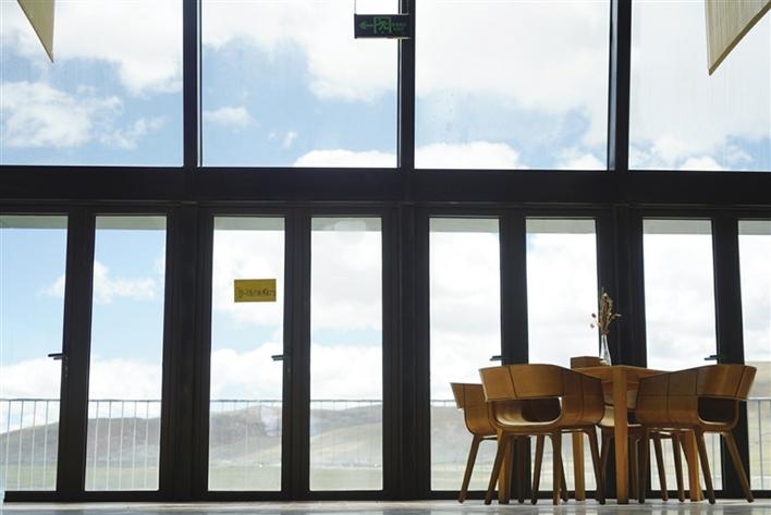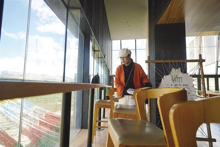 從(cong) 正門進入,穿過犛牛文化空間走廊,便可到能夠以最佳視角欣賞念青唐古拉山的VR觀景台。緊鄰觀景台右側(ce) ,是一間擺放當地文創產(chan) 品、各類書(shu) 籍的觀景咖啡廳。該咖啡廳的兩(liang) 麵牆體(ti) 設計為(wei) 超大落地窗,在此休息的遊客可以邊品嚐咖啡,邊欣賞念青唐古拉山及拉多草原的美景。走進咖啡廳,記者看到不少在這裏休息的遊客都在低頭寫(xie) 著什麽(me) ,經咖啡廳負責人介紹:“這些遊客是在寫(xie) 明信片,我們(men) 這裏不僅(jin) 提供餐飲,還提供印有本地風景的明信片,並同中國郵政合作,幫助遊客按時將明信片寄到他們(men) 的親(qin) 朋好友手中,讓遊客們(men) 的旅途變得更有意義(yi) 。”
