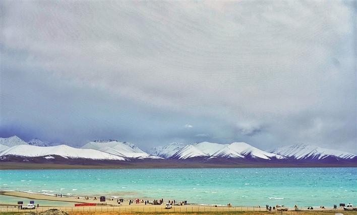 從(cong) 羊八井出發至當雄縣,有一條向左的岔路,沿著這條路一直向前開約60公裏,就能到達西藏最著名的景區之一——納木措。納木措,湖麵海拔4718米,形狀近似長方形,東(dong) 西長70多千米,南北寬30多千米,湖的東(dong) 南部是直插雲(yun) 宵、終年積雪的念青唐古拉山主峰,清澈的湖水便來自念青唐古拉山融化的冰雪,北側(ce) 則倚偎著和緩連綿的高原丘陵,廣闊的草原繞湖四周,似是將納木措小心翼翼地護在懷中。湖水顏色由罕見的碧藍與(yu) 碧綠色相結合,是畫師都不易調出的顏色,遠遠望去,碧波粼粼的湖水與(yu) 周圍的山脈、草原、藍天、白雲(yun) 交相輝映,令在場的人不禁連連感歎仿佛置身於(yu) 仙境之中。