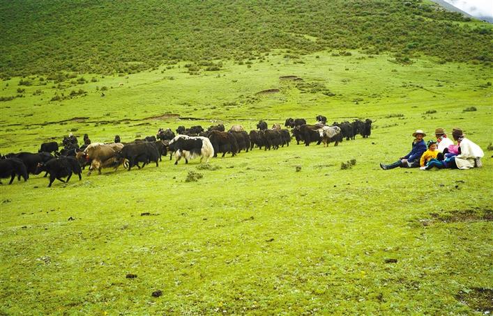 圖為(wei) 墨竹工卡縣斯布鄉(xiang) 牧民在斯布溝牧場放牧。記者 格桑吉美 攝