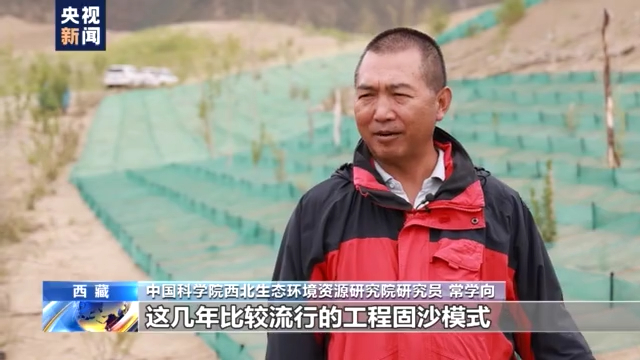 中國科學院西北生態環境資源研究院研究員 常學向:這幾年比較流行的工程固沙模式,可以大批量地、非常快捷地來實施工程,再通過生物措施來把流沙固定下來。好多品種,它治沙效果非常好,長勢也非常旺。但是到了青藏高原它不見得能適應這個(ge) 青藏高原的環境和氣候。哪些品種能適應西藏的環境和氣候條件,這樣我們(men) 有選擇地來推廣到各個(ge) 治沙區和治沙點。