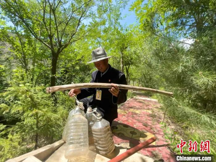正值烈日當頭,禹王峽內(nei) 的一處山坡上,72歲的馬進才穿著中山裝、布鞋,穿梭在林間澆水、巡護,用他的話說,“每天都要來看看‘老朋友’”。