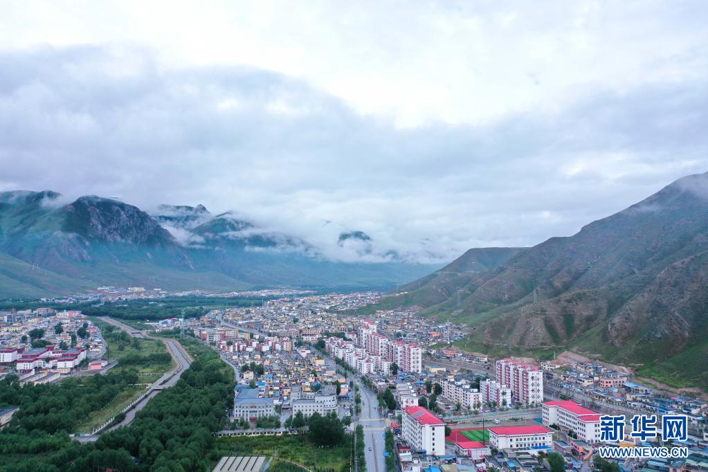 這是8月7日拍攝的玉樹市城區(無人機照片)。新華社記者 吳剛 攝