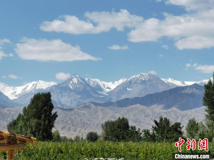 7月下旬,酒泉市肅州區祁連山覆蓋白雪與(yu) 藍天白雲(yun) 相映成趣。(資料圖) 張婧 攝