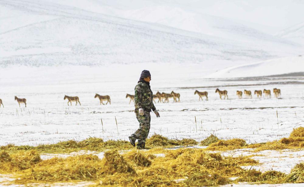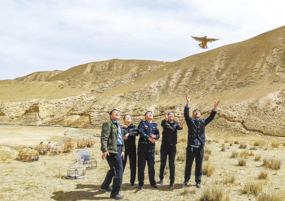 從(cong) 戴上紅袖章那天開始,他就穿梭在山林、湖畔、河邊,有時撿拾垃圾,有時關(guan) 注野生動物的蹤跡,默默守護這片家鄉(xiang) 的草場、湖泊、高山。在一次巡護中,切保和隊友們(men) 發現由於(yu) 季節的變化,導致黑頸鶴等野生動物的巢穴被淹,給它們(men) 的生產(chan) 棲息帶來了影響。於(yu) 是,他和其他生態管護員為(wei) 黑頸鶴等野生動物修巢築窩12個(ge) 。“不讓垃圾汙染草場、汙染動植物的水源地”是每一位管護員的共同想法。