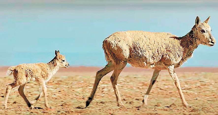 藏羚羊每年12月交配,次年5月開始,懷孕的母藏羚羊會(hui) 跋涉數百公裏乃至上千公裏,到產(chan) 崽地——烏(wu) 蘭(lan) 烏(wu) 拉湖、卓乃湖、可可西裏湖和太陽湖等地產(chan) 崽,到了7月,再帶著新生的羔羊返回棲息地。