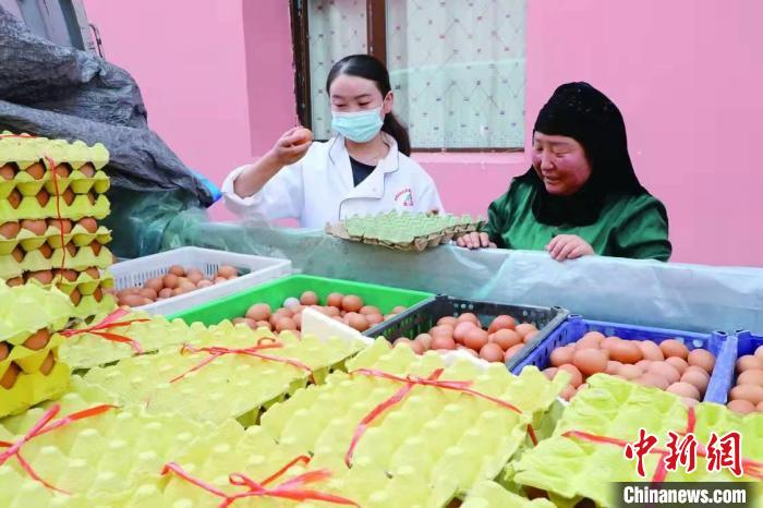 圖為(wei) 青海貴德縣新街鄉(xiang) 林下雞養(yang) 殖合作社收獲雞蛋。才讓本 攝