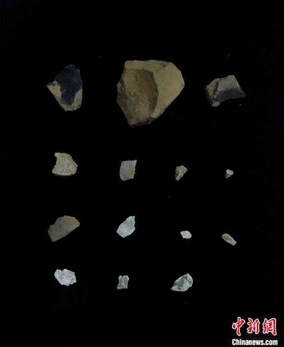 資料圖為(wei) 8月19日,黃藏寺剖麵上的細石器製品。 中新社發 侯光良 攝