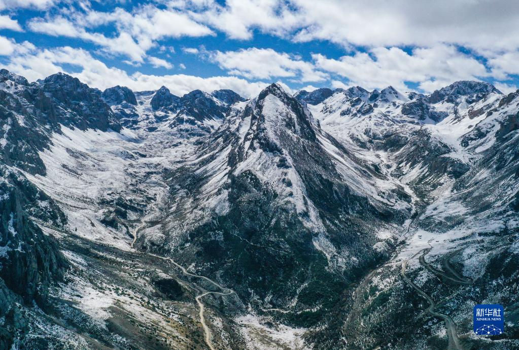 巴巴溝景區內(nei) 的雪山(10月23日攝,無人機照片)。新華社記者 王曦 攝