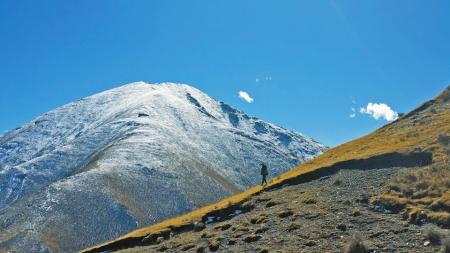 10月23日早晨,薑楠備好望遠鏡、相機、水,準備上山,同行的還有藏族同事紮拉和一位藏族牧民,任務是為(wei) 雲(yun) 塔村3座小山上的紅外相機更換電池。這裏的山並不高,但因高原氧氣稀薄,增添攀登難度。山間未完全融化的雪跡,也讓山路濕滑難走。