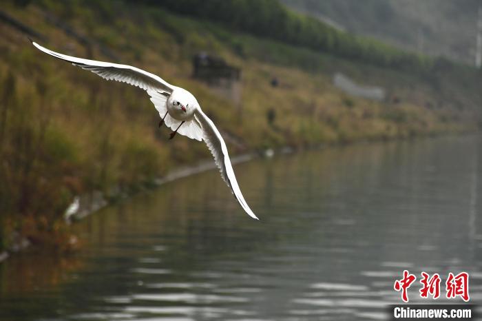 海鷗在甜城湖上空翱翔。 付垚霖 攝