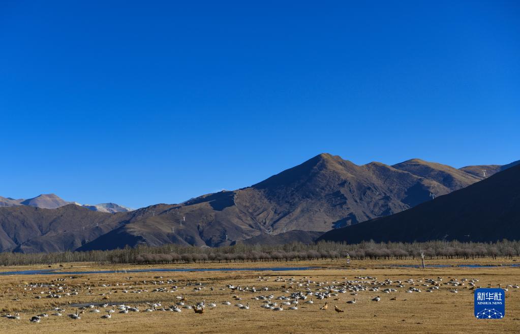 唐嘎鄉(xiang) 位於(yu) 拉薩市達孜區東(dong) 北部,這裏每年冬季都會(hui) 迎來黑頸鶴、斑頭雁、赤麻鴨等候鳥。這些在此越冬的“客人”和周邊的田園、濕地共同構成高原冬季美景。