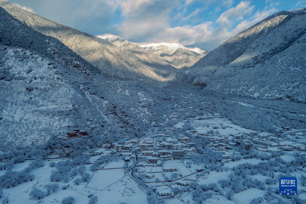 西藏林芝市米林縣派鎮雪景(1月14日攝,無人機照片)。新華社發(董誌雄 攝)