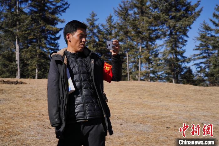 圖為(wei) 桑傑加用手機記錄自己巡護的林場。 馬銘言 攝
